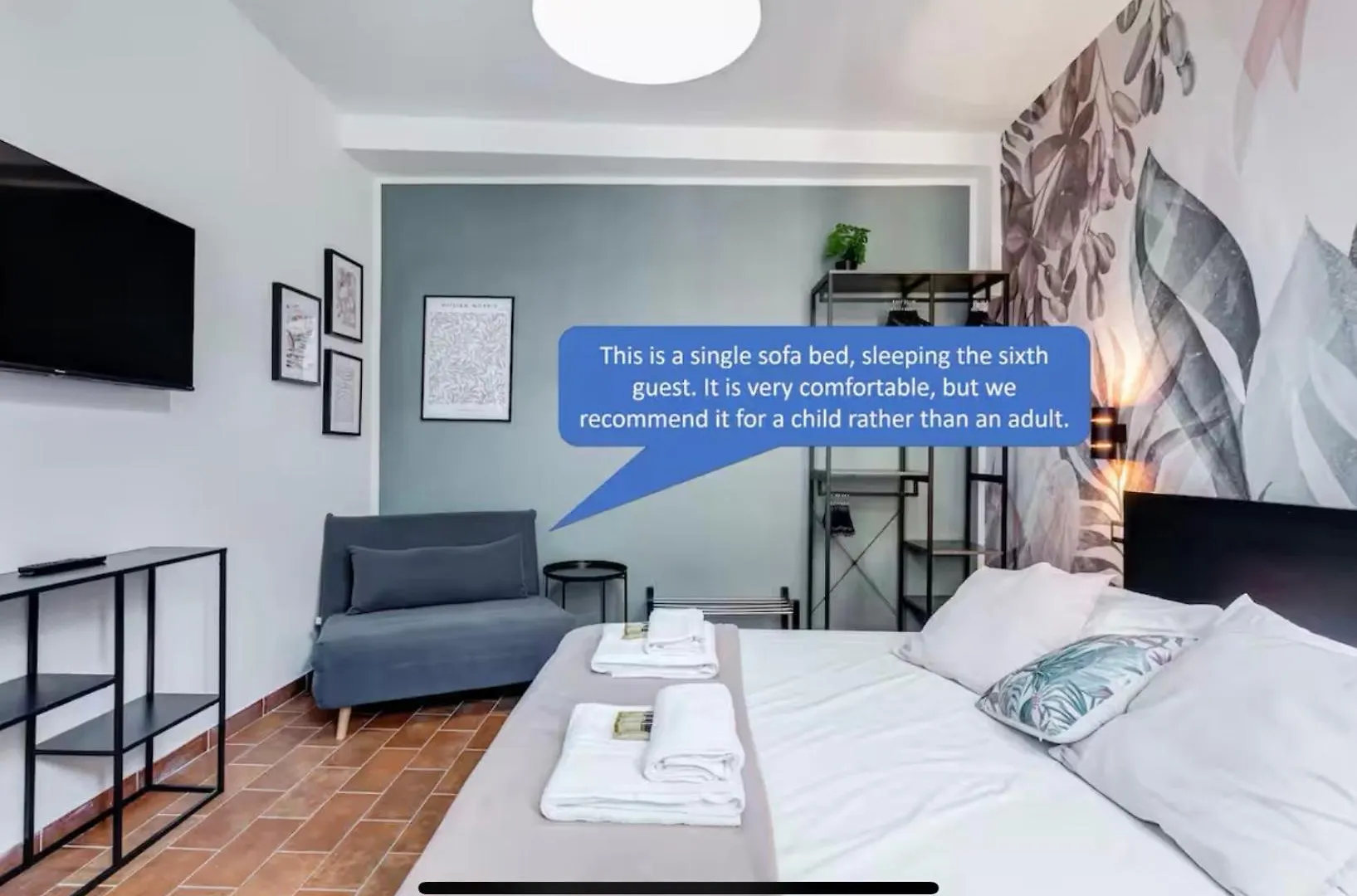 Deze 1-badkamer accommodatie is uitgerust met een flatscreen TV met satellietzenders en TV met meerdere kanalen, evenals voorzieningen zoals een strijkijzer en strijkplank, airconditioning, en veiligheidsvoorzieningen zoals rookmelders. Het appartement is ook ingericht met een bank. Deze accommodatie heeft 2 slaapkamers met hypoallergene kussens. 1 badkamer heeft een apart toilet en een douche, en moderne gemakken zoals een droger en handdoeken.